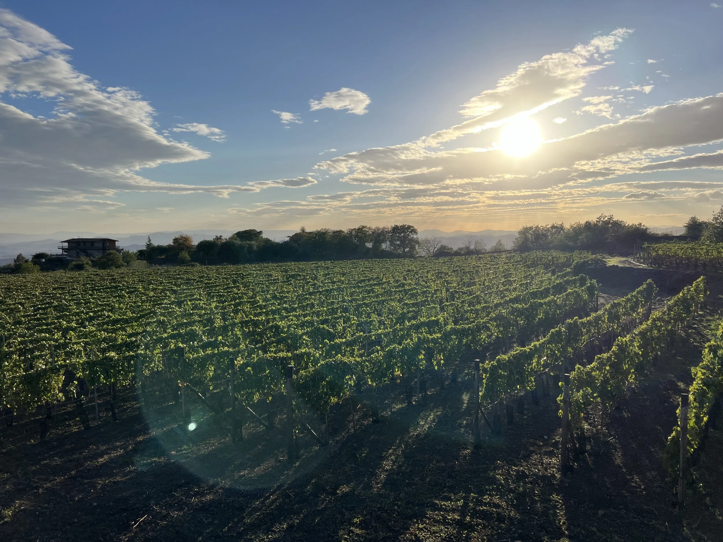 L’esposizione a sud garantisce alle vigne una presenza continua di luce durante l’arco della giornata. Questo permette all’uva di raggiungere una maturazione completa, sia dal punto di vista zuccherino sia da quello fenolico. Le bucce si sviluppano in modo uniforme e diventano il principale veicolo dell’identità aromatica del vino.